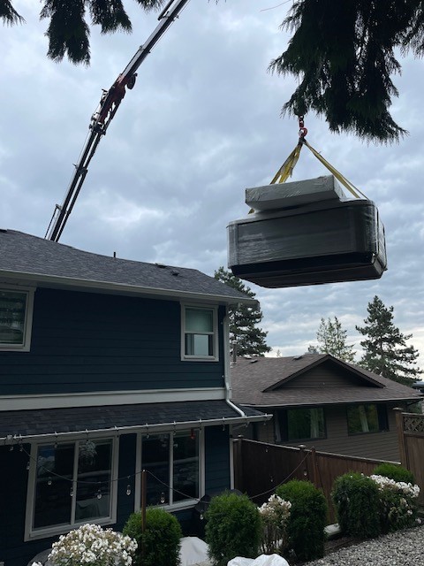 As summer slowly winds down, we’re not letting the cooler weather get us down. This week, our work took us throughout the Northshore, helping families extend their outdoor enjoyment by hoisting brand new hot tubs into their backyards!