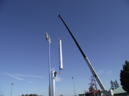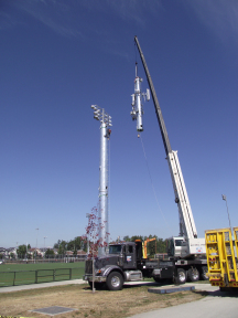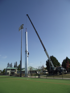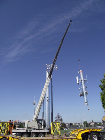 Phoenix was contracted to lift and place two cell towers at the Cloverdale Athletic Park. Each tower consisted of three sections, with each section being lifted and righted by two of our cranes. Using the 45 Ton Stiff Boom and the 60 Ton Knuckle Boom, our operators were able to safely and efficiently handle this work.