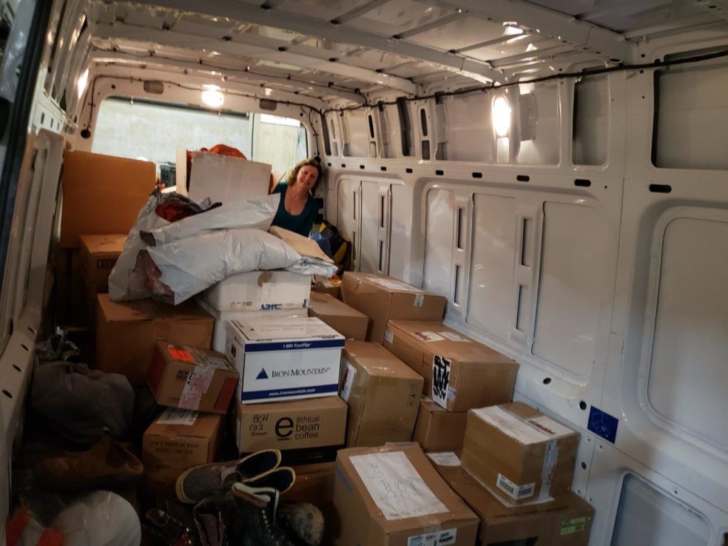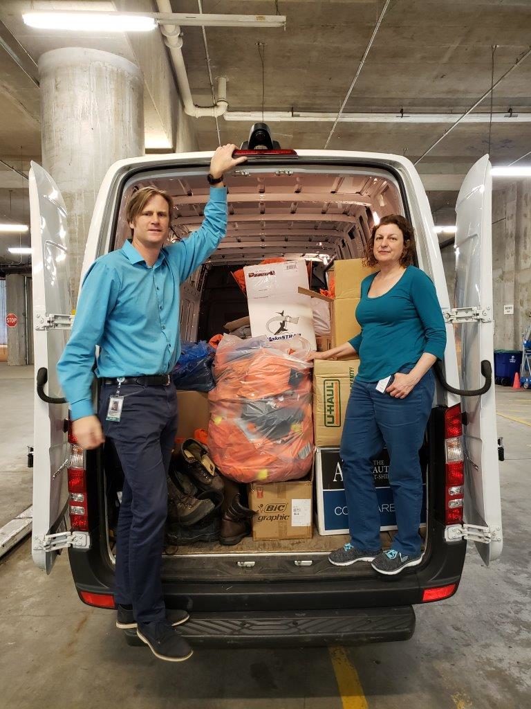 They didn’t wait long to take us up on the offer as we received a call the day after BC Hydro’s “Spring Blast Campaign” ended. Bags and boxes full of PPE, work clothes and accessories needed to be picked up, so our driver Jimmy showed up with his 3/4 ton van for the job.