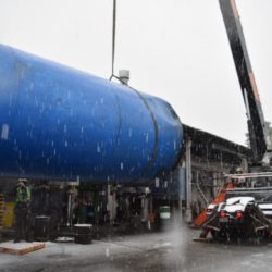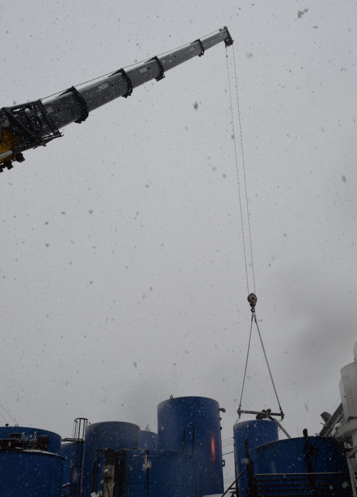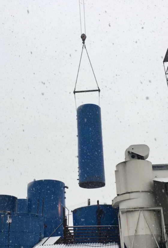 When we looked at the tank layout provided (image on the left), we knew that rigging instructions, strong communication and team work would be needed to safely complete the lift of the eight-foot tanks. Keeping this in mind, we sent three experienced operators – one who acted as a rigger – and reminded them that: