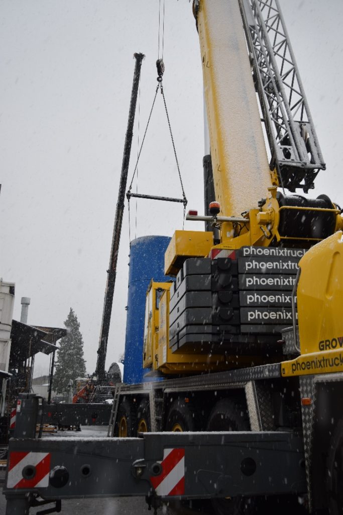 As you’ll see in the photo gallery below, the weather was not on our side that day. The snow could have easily been reason to delay or cancel this job, but due to the extensive pre-planning as well as the experience and professionalism of our team onsite, this project was completed on schedule, resulting in a satisfied customer.