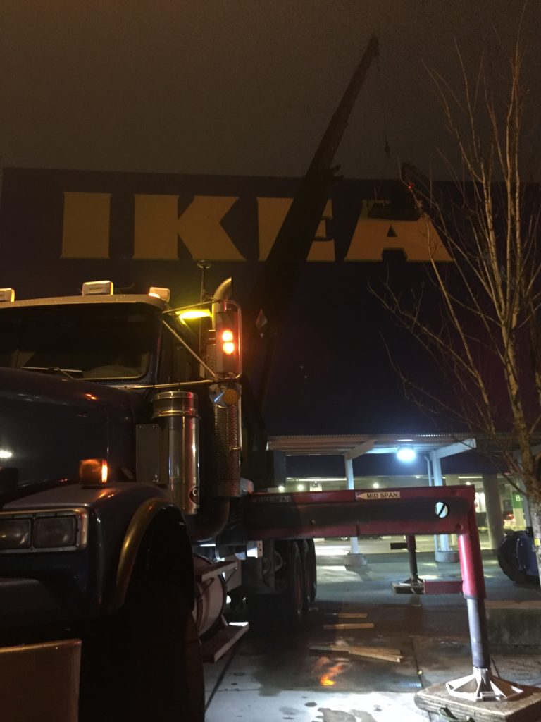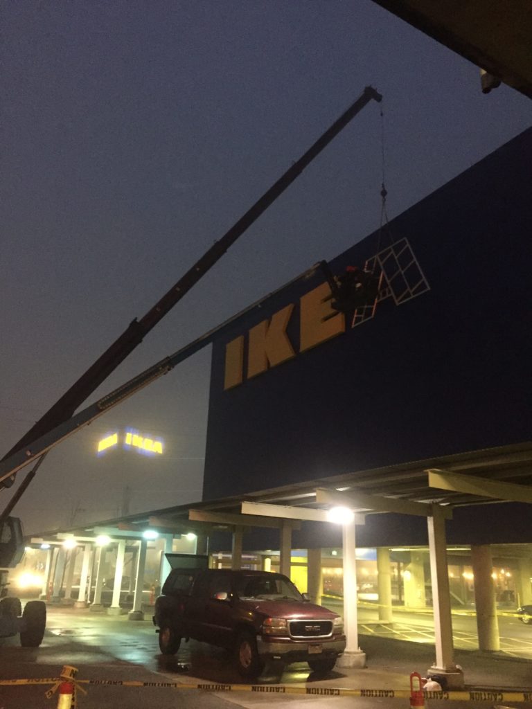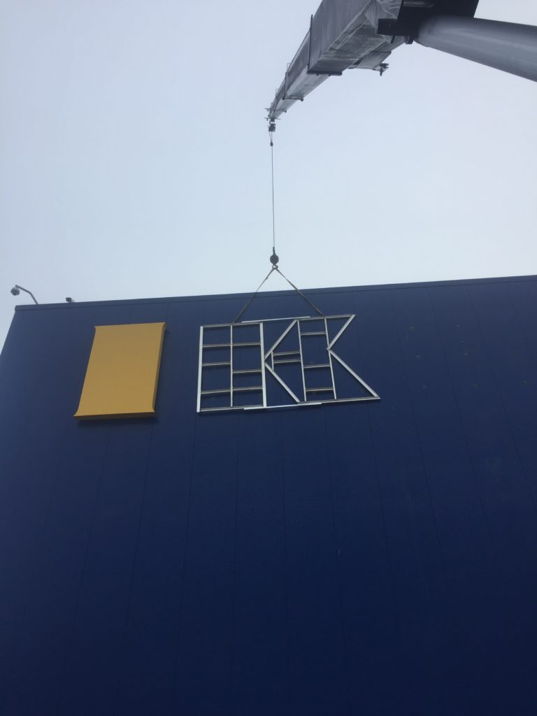 Last week we were pleased to be contracted by the world’s largest furniture retailer and assist in positioning their store’s sign.