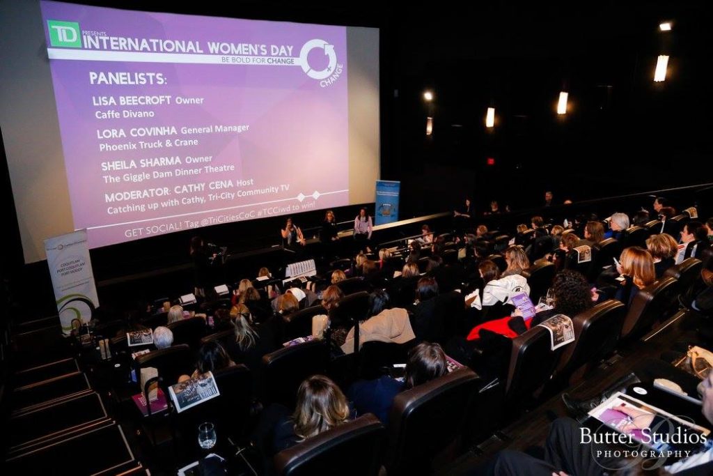 Last week, Phoenix Truck & Crane’s General Manager, Lora Covinha, was invited to participate in a panel discussion at the Tri-Cities Chamber of Commerce International Women’s Day Event. This unique gathering was held at Cineplex Cinemas Coquitlam and celebrated the social, economic, cultural and political achievements of women.