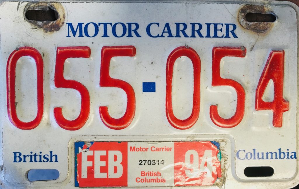 The origins of the Motor Carrier license plate in British Columbia – as in most other jurisdictions across North America – can be traced to the competitive decline of the railroads vis-a-vis the trucking industry during the first decades of the 20th century. Generally, the controls that were applied to the trucking industry were patterned after the regulations used in the railway and public utility fields and concerned restrictions on entry and limited the maximum and minimum rates that truckers could charge. But this didn’t stop Bill who was determined to get a license and operate on his own.