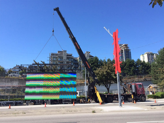 Phoenix was contracted by the Downtown New Westminster BIA to hoist and hold the 27’ foot screen during this year’s Columbia StrEAT Food Truck Festival. Using the 23 Ton Rear Mount crane, our operator hoisted and held the screen for over three hours, allowing thousands of fans to watch the as the Hip played thirty songs, live from their hometown of Kingston.
