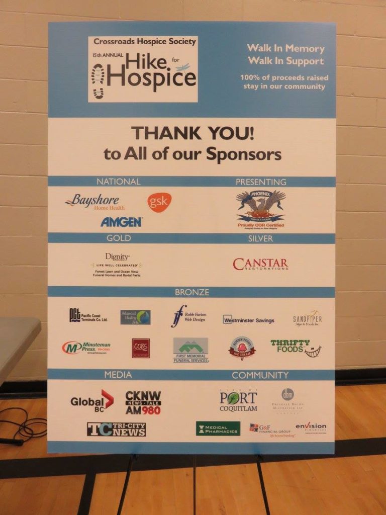 Supporting the 15th annual Hike for Hospice event as a presenting sponsor was an easy decision for us, as we wanted to honour the memory of the loved ones we lost in our 26 years in business. Our Phoenix family has had its fair share of loss and recognizes the amazing work that Crossroads Hospice Society lends to our community – a place that does not only provide compassionate care to those affected by the end-of-life experience, but also establishes a connection with others to decrease the isolation that grief brings.