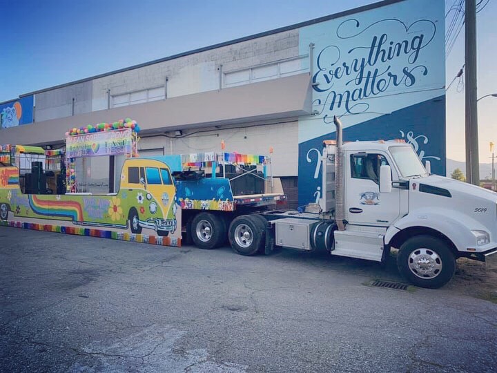 Last Sunday, members and allies of the LGBTQ & the community at large took the streets of Vancouver to celebrate love and equality – and when we were asked to lend one of our tractors and a 48-foot trailer for this year’s “Recovery float”, we gladly stepped up.